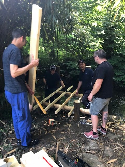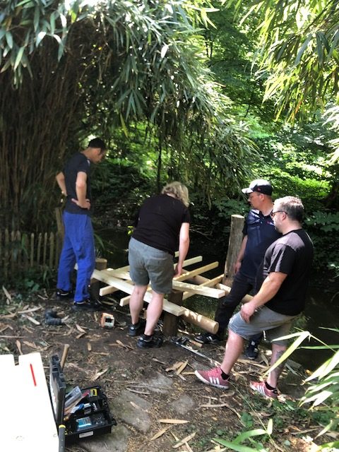 Ein Ingenieur-Team der Firma 3M aus Neuss hat unser Wasserlabor an der Erft im Rahmen einer Teambuilding-Aktion tatkräftig unterstützt. Entstanden sind eine neue Plattform und eine Wasserwinde, mit der Kinder nun direkt am Ufer Wasser entnehmen und untersuchen können.